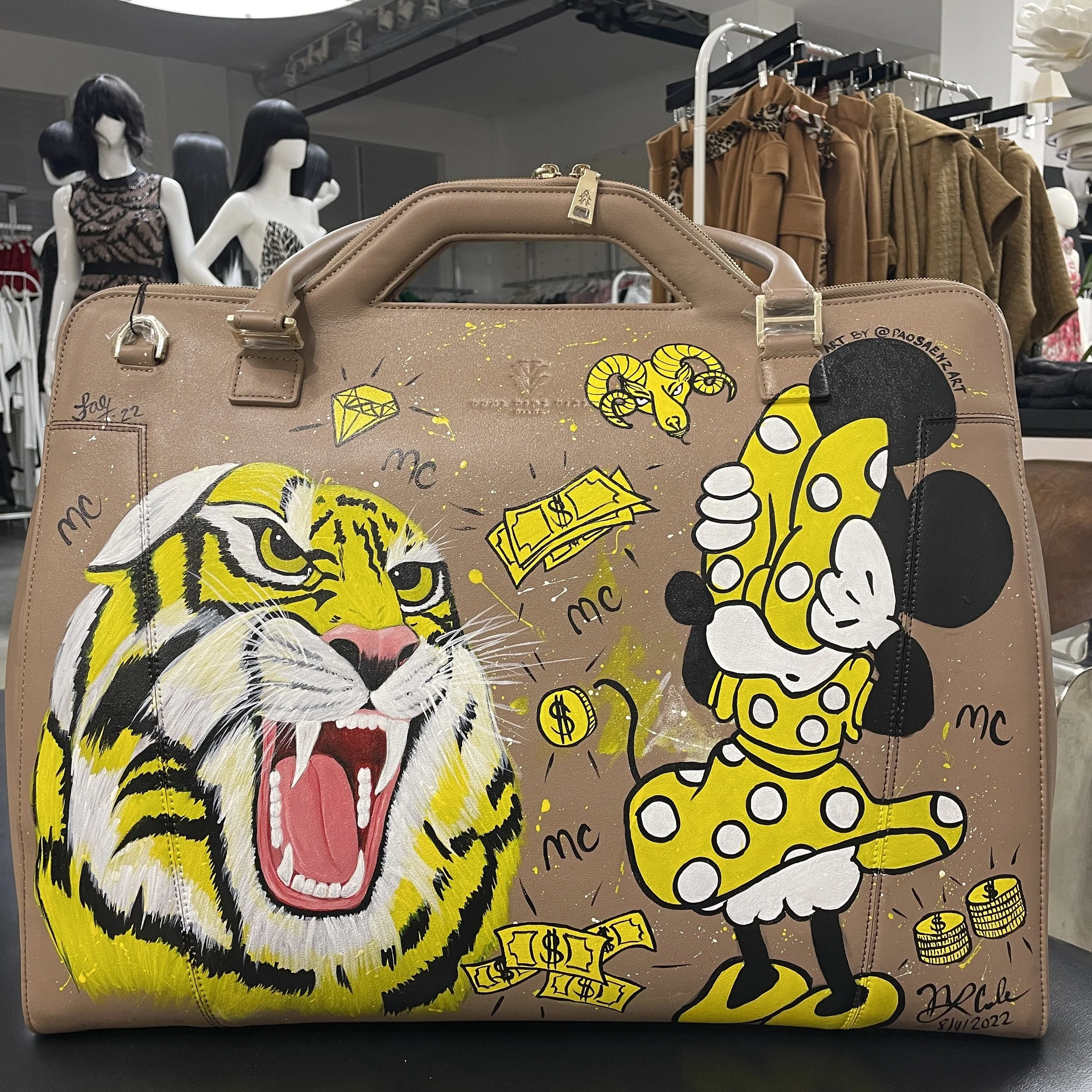 Hand Painted Leather Travel Bag for Dion Atelier.