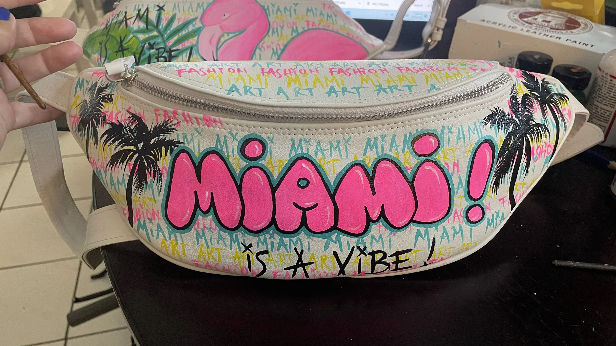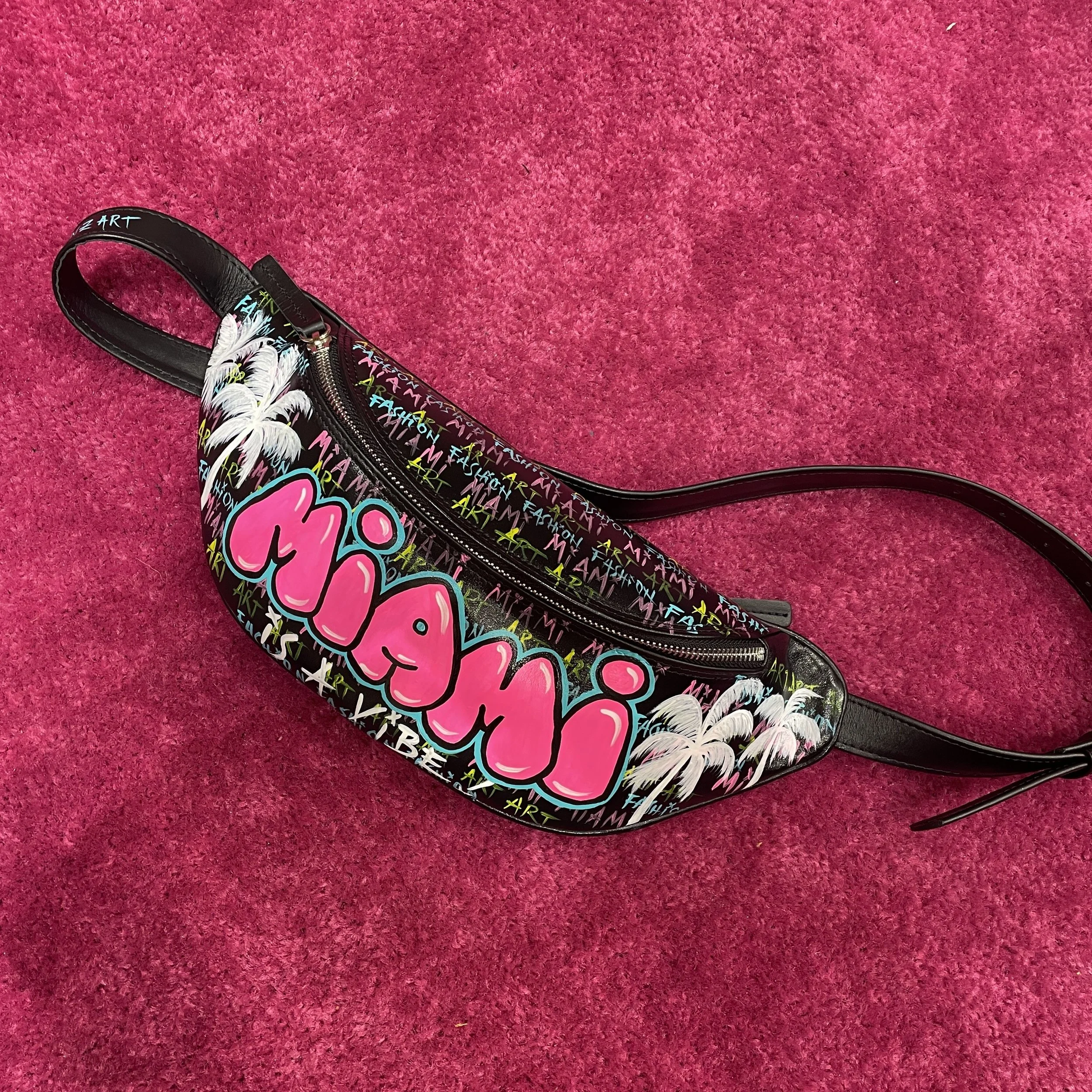 Hand Painted Leather Bum Bag. Miami is a Vibe Collection for Arthem Miami.