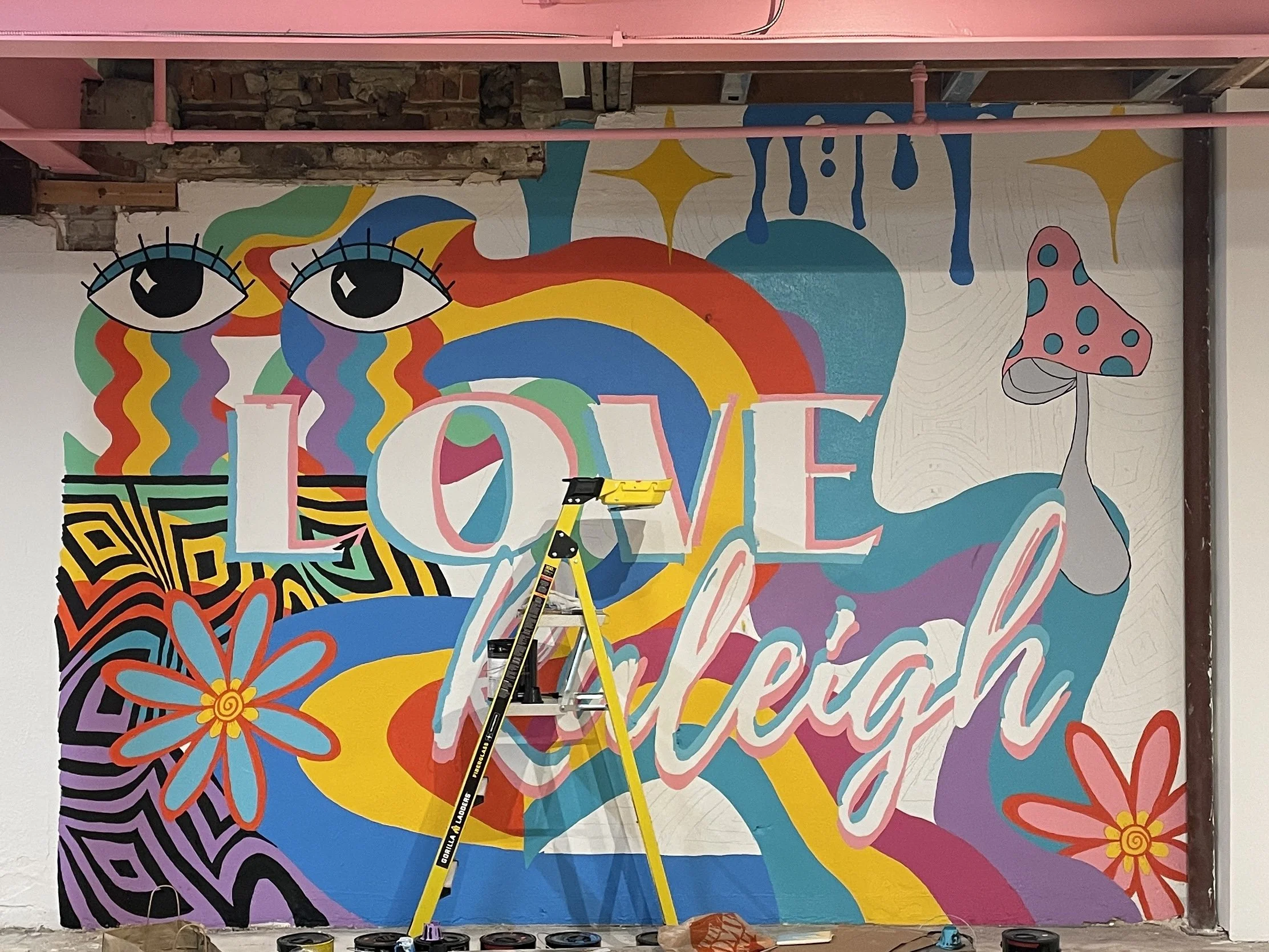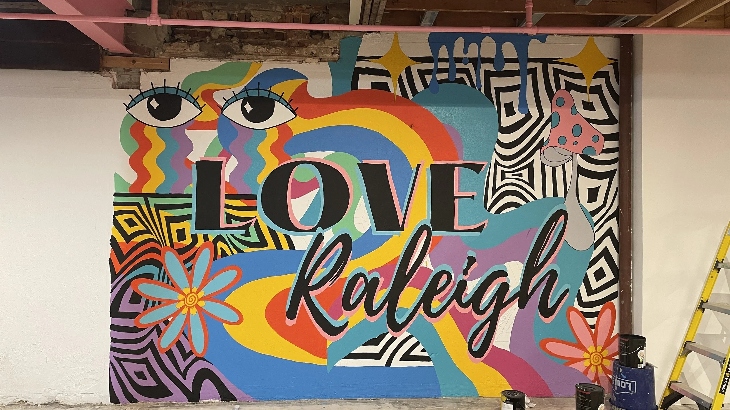 This is the process of the Love Raleigh Wall. Dimensions: 14 ft by 9 ft